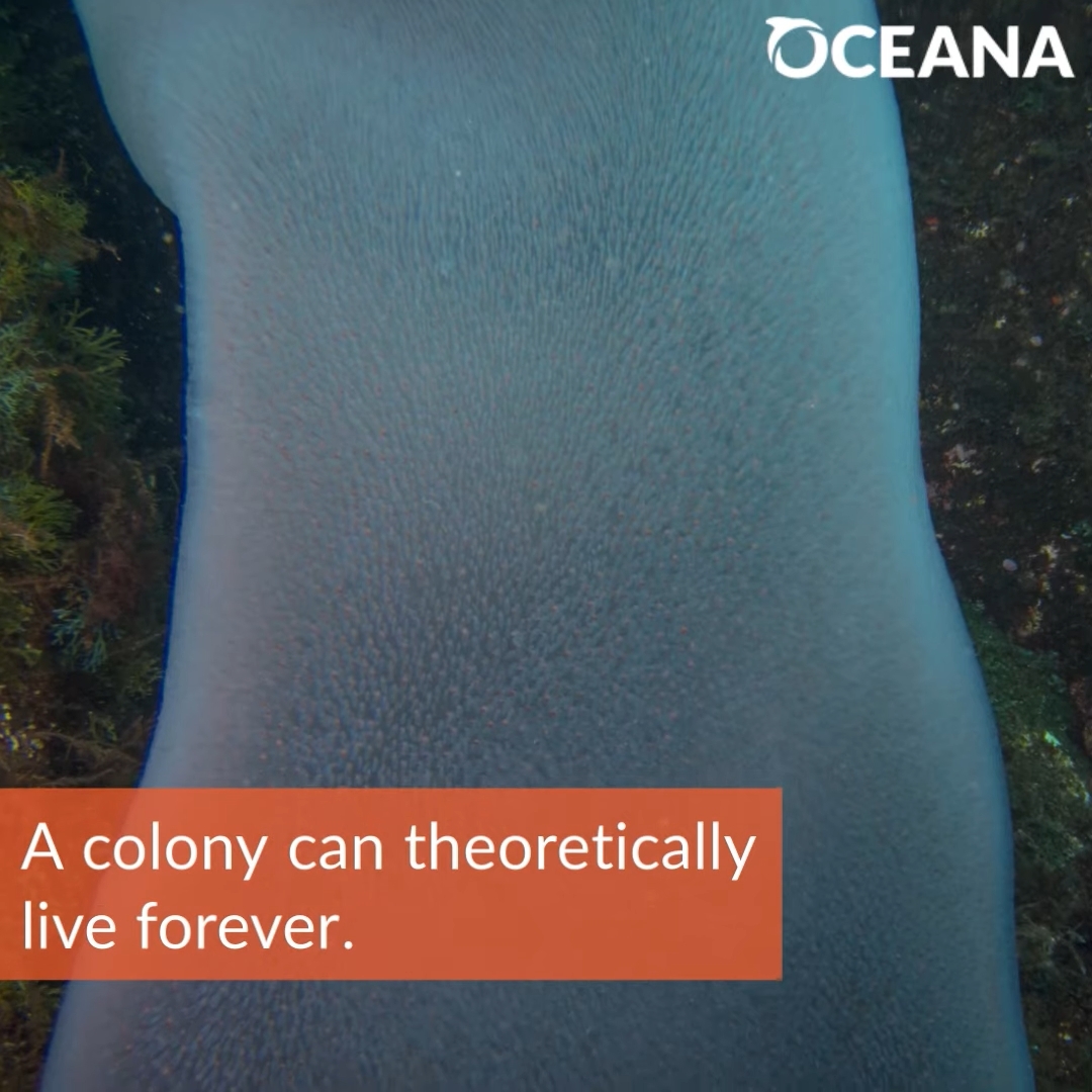 군체를 형성하는 개별 플랑크톤은 군체로부터 분리되어도 계속 성장할 수 있습니다. 그러므로 Giant Pyrosome은 모든 개체가 동시에 죽지 않는 한 살아남을 것으로 보입니다. Oceana는 "Giant Pyrosome은 이론적으로 영원히 살 수 있다"고 설명합니다.